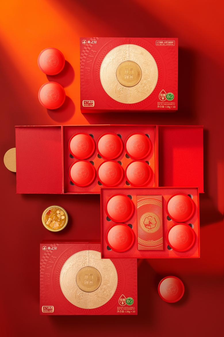 為長輩挑選滋補好禮,煥新升級的碗燕·元氣款禮盒實為優(yōu)先之選。中國紅與黃金色系的精美配搭,凸顯光亮色澤與尊貴質感,大方得體,有禮有面。禮盒設計圍繞“圓”的概念,以年輪為設計意象,象征歲月賦予的智慧,也傳遞著圓滿之意。盒上刻畫金燕反哺動人圖景,祥云繁花環(huán)繞其中,蘊藏濃厚情意。獨特的對稱開盒頗具巧思與創(chuàng)意,內里雙層設計,共承十碗珍饈碗燕·元氣款,滿載濃濃營養(yǎng)與深切關懷,讓滋補觸手可及,關愛無處不在。